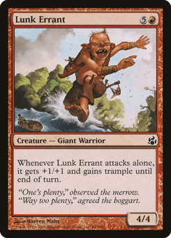 Whenever this creature attacks alone, it gets +1/+1 and gains trample until end of turn.