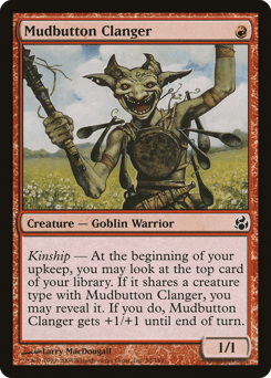 Kinship — At the beginning of your upkeep, you may look at the top card of your library. If it shares a creature type with this creature, you may reveal it. If you do, this creature gets +1/+1 until end of turn.