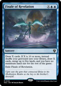 Draw X cards. If X is 10 or more, instead shuffle your graveyard into your library, draw X cards, untap up to five lands, and you have no maximum hand size for the rest of the game. Exile Finale of Revelation.