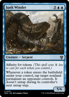 Affinity for tokens (This spell costs {1} less to cast for each token you control.) Whenever a token you control enters, tap target nonland permanent an opponent controls. It doesn't untap during its controller's next untap step.