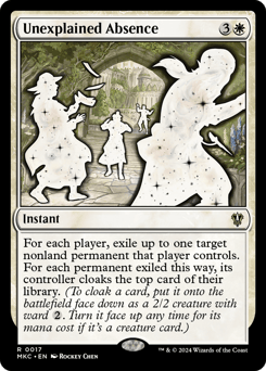 For each player, exile up to one target nonland permanent that player controls. For each permanent exiled this way, its controller cloaks the top card of their library. (To cloak a card, put it onto the battlefield face down as a 2/2 creature with ward {2}. Turn it face up any time for its mana cost if it's a creature card.)