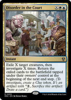 Parley — Whenever this creature attacks, each player reveals the top card of their library. For each nonland card revealed this way, you investigate. Then each player draws a card. At the beginning of your end step, you may untap all lands you control. If you do, you can't cast spells until your next turn.