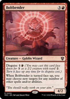 Disguise {1}{R} (You may cast this card face down for {3} as a 2/2 creature with ward {2}. Turn it face up any time for its disguise cost.) When this creature is turned face up, you may choose new targets for any number of other spells and/or abilities.