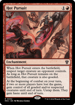 When this enchantment enters, suspect target creature an opponent controls. As long as this enchantment remains on the battlefield, that creature is also goaded. At the beginning of combat on your turn, if two or more players have lost the game, gain control of all goaded and/or suspected creatures until end of turn. Untap them. They gain haste until end of turn.