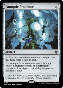 {T}: The next face-down creature spell you cast this turn costs {3} less to cast. If turning a face-down permanent face up causes a triggered ability of a permanent you control to trigger, that ability triggers an additional time.
