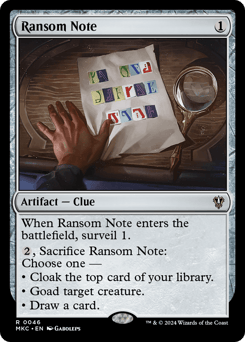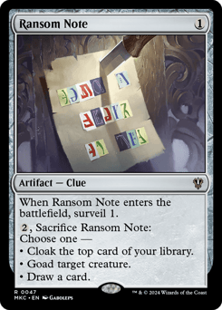When this artifact enters, surveil 1. {2}, Sacrifice this artifact: Choose one — • Cloak the top card of your library. • Goad target creature. • Draw a card.
