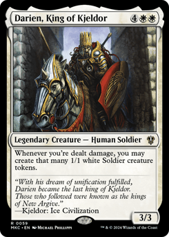 Whenever you're dealt damage, you may create that many 1/1 white Soldier creature tokens.