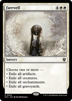 Choose one or more — • Exile all artifacts. • Exile all creatures. • Exile all enchantments. • Exile all graveyards.
