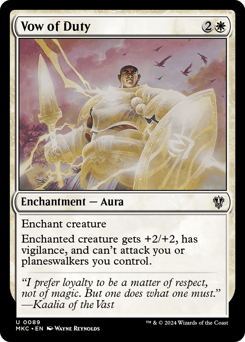 Enchant creature Enchanted creature gets +2/+2, has vigilance, and can't attack you or planeswalkers you control.
