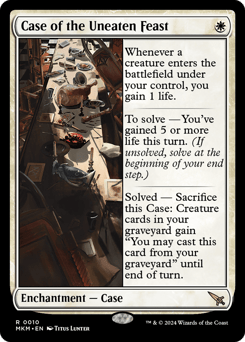 Whenever a creature you control enters, you gain 1 life. To solve — You've gained 5 or more life this turn. (If unsolved, solve at the beginning of your end step.) Solved — Sacrifice this Case: Creature cards in your graveyard gain "You may cast this card from your graveyard" until end of turn.