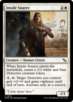 When this creature enters, create a 2/2 white and blue Detective creature token. {3}, {T}: Target Detective you control gets +2/+0 and gains vigilance until end of turn. Activate only as a sorcery.