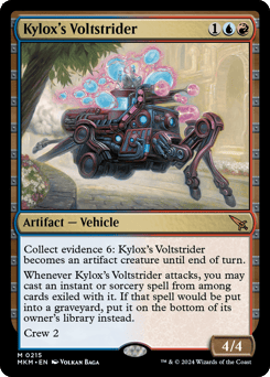 When this artifact enters, look at the top four cards of your library. Put two of them into your hand and the rest into your graveyard. You lose 2 life. {2}, {T}, Collect evidence 3: Each opponent loses 3 life unless they discard a card or sacrifice a creature. (To collect evidence 3, exile cards with total mana value 3 or greater from your graveyard.)