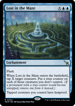 Flash When this enchantment enters, tap X target creatures. Put a stun counter on each of those creatures you don't control. (If a permanent with a stun counter would become untapped, remove one from it instead.) Tapped creatures you control have hexproof.