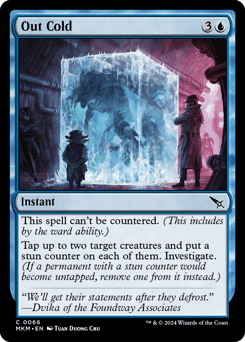 This spell can't be countered. (This includes by the ward ability.) Tap up to two target creatures and put a stun counter on each of them. Investigate. (If a permanent with a stun counter would become untapped, remove one from it instead.)