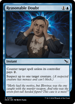 Counter target spell unless its controller pays {2}. Suspect up to one target creature. (A suspected creature has menace and can't block.)