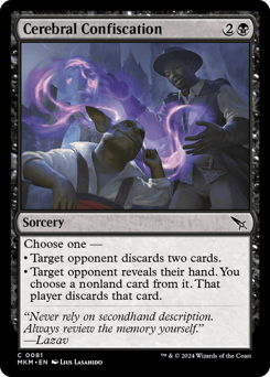Choose one — • Target opponent discards two cards. • Target opponent reveals their hand. You choose a nonland card from it. That player discards that card.