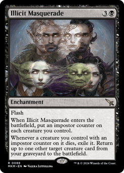 Flash When this enchantment enters, put an impostor counter on each creature you control. Whenever a creature you control with an impostor counter on it dies, exile it. Return up to one other target creature card from your graveyard to the battlefield.