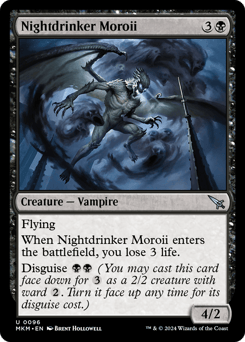 Flying When this creature enters, you lose 3 life. Disguise {B}{B} (You may cast this card face down for {3} as a 2/2 creature with ward {2}. Turn it face up any time for its disguise cost.)