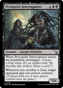 When this creature enters, investigate. (Create a Clue token. It's an artifact with "{2}, Sacrifice this token: Draw a card.") Whenever you sacrifice a Clue, target opponent gets two poison counters. (A player with ten or more poison counters loses the game.)