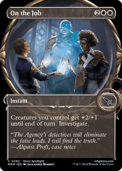 Target creature gets +2/+2 until end of turn. Investigate. (Create a Clue token. It's an artifact with "{2}, Sacrifice this token: Draw a card.")