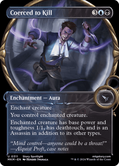 Enchant creature You control enchanted creature. Enchanted creature has base power and toughness 1/1, has deathtouch, and is an Assassin in addition to its other types.