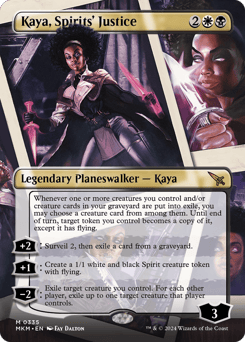 Whenever one or more creatures you control and/or creature cards in your graveyard are put into exile, you may choose a creature card from among them. Until end of turn, target token you control becomes a copy of it, except it has flying. [+2]: Surveil 2, then exile a card from a graveyard. [+1]: Create a 1/1 white and black Spirit creature token with flying. [−2]: Exile target creature you control. For each other player, exile up to one target creature that player controls.