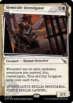 Whenever one or more nontoken creatures you control die, investigate. This ability triggers only once each turn. (Create a Clue token. It's an artifact with "{2}, Sacrifice this token: Draw a card.")