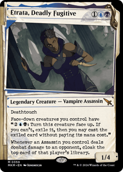 Deathtouch Face-down creatures you control have "{2}{U}{B}: Turn this creature face up. If you can't, exile it, then you may cast the exiled card without paying its mana cost." Whenever an Assassin you control deals combat damage to an opponent, cloak the top card of that player's library.
