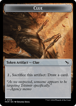Flying When Ezrim enters, investigate twice. (To investigate, create a Clue token. It's an artifact with "{2}, Sacrifice this token: Draw a card.") {1}, Sacrifice an artifact: Ezrim gains your choice of vigilance, lifelink, or hexproof until end of turn.