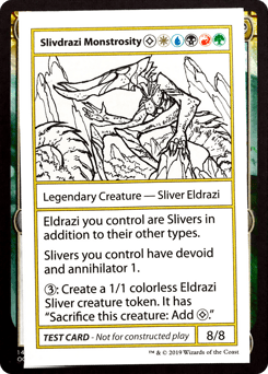 Eldrazi you control are Slivers in addition to their other types. Slivers you control have devoid and annihilator 1. {3}: Create a 1/1 colorless Eldrazi Sliver creature token. It has "Sacrifice this creature: Add {C}."