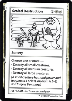 Choose one or more — • Destroy all small creatures. • Destroy all medium creatures. • Destroy all large creatures. (A small creature has total power and toughness 4 or less, medium is 5—8, and large is 9 or more.)