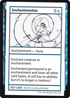 Enchant creature or enchantment Enchanted permanent is an enchantment and loses all other card types. (It still has its abilities, but it's no longer a creature.)