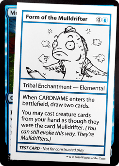 When Form of the Mulldrifter enters, draw two cards. You may cast creature cards from your hand as though they were the card Mulldrifter. (You can still evoke this way. They're Mulldrifters.)