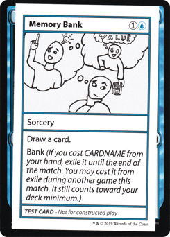 Draw a card. Bank (If you cast Memory Bank from your hand, exile it until the end of the match. You may cast it from exile during another game this match. It still counts toward your deck minimum.)