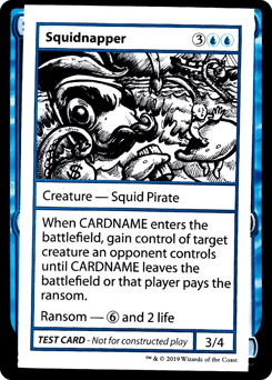 When Squidnapper enters, gain control of target creature an opponent controls until Squidnapper leaves the battlefield or that player pays the ransom. Ransom — {6} and 2 life