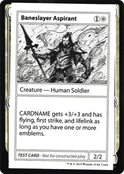 Baneslayer Aspirant gets +3/+3 and has flying, first strike, and lifelink as long as you have one or more emblems.