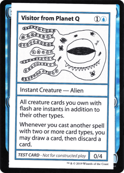 All creature cards you own with flash are instants in addition to their other types. Whenever you cast another spell with two or more card types, you may draw a card, then discard a card.