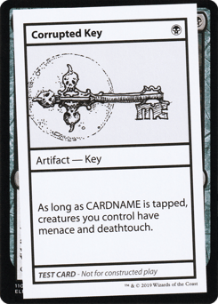 As long as Corrupted Key is tapped, creatures you control have menace and deathtouch.