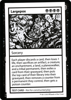 Each player discards a card, then loses 1 life, then sacrifices an artifact, a creature, an enchantment, a land, a planeswalker, and a tribal permanent, then exiles a card from their graveyard, then puts the top card of their library into their graveyard, then removes a counter from a permanent they control, then gets a poison counter.