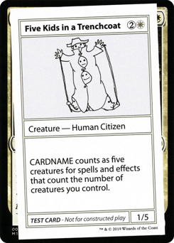 Five Kids in a Trenchcoat counts as five creatures for spells and effects that count the number of creatures you control.