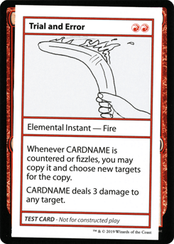 Whenever Trial and Error is countered or fizzles, you may copy it and choose new targets for the copy. Trial and Error deals 3 damage to any target.