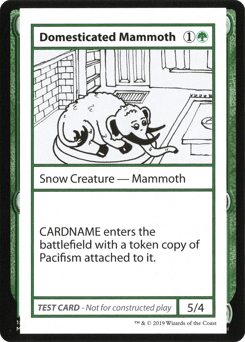 Domesticated Mammoth enters with a token copy of Pacifism attached to it.