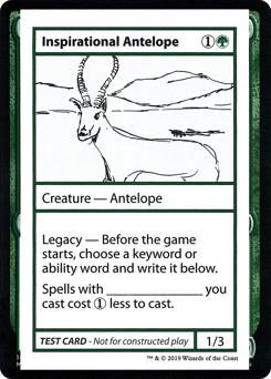 Legacy — Before the game starts, choose a keyword or ability word and write it below. Spells with __________ you cast cost {1} less to cast.