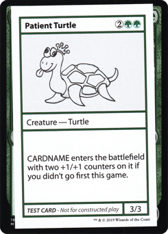 Patient Turtle enters with two +1/+1 counters on it if you didn't go first this game.