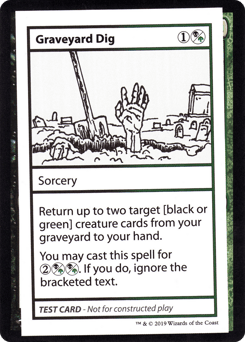 Return up to two target [black or green] creature cards from your graveyard to your hand. You may cast this spell for {2}{B/G}{B/G}. If you do, ignore the bracketed text.