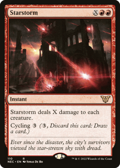 Starstorm deals X damage to each creature. Cycling {3} ({3}, Discard this card: Draw a card.)
