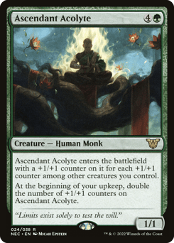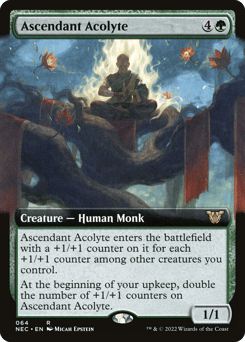 This creature enters with a +1/+1 counter on it for each +1/+1 counter among other creatures you control. At the beginning of your upkeep, double the number of +1/+1 counters on this creature.