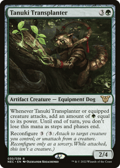 Whenever this creature or equipped creature attacks, add an amount of {G} equal to its power. Until end of turn, you don't lose this mana as steps and phases end. Reconfigure {3} ({3}: Attach to target creature you control; or unattach from a creature. Reconfigure only as a sorcery. While attached, this isn't a creature.)