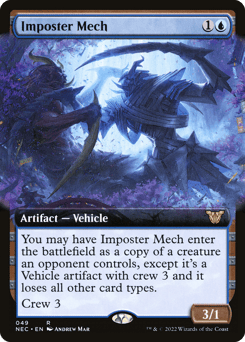You may have this Vehicle enter as a copy of a creature an opponent controls, except it's a Vehicle artifact with crew 3 and it loses all other card types. Crew 3