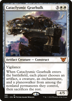 Vigilance When this creature enters, each player chooses an artifact, a creature, an enchantment, and a planeswalker from among the nonland permanents they control, then sacrifices the rest.